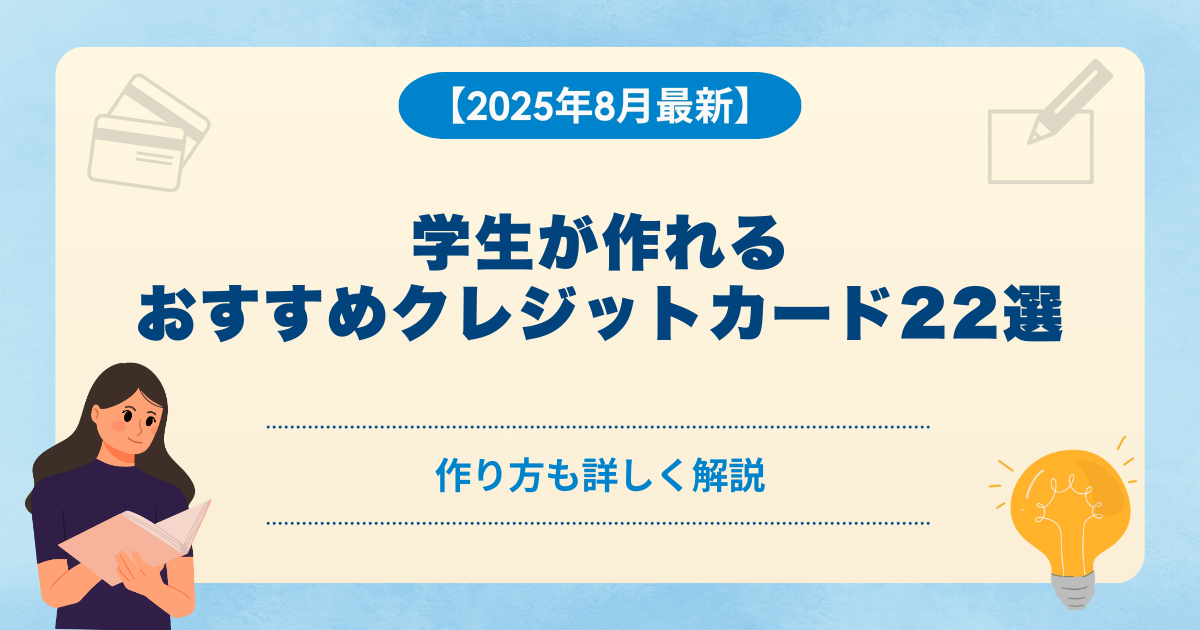 本記事では、学生が作れるクレジットカードの中でも、特におすすめのカード22選を紹介した。
