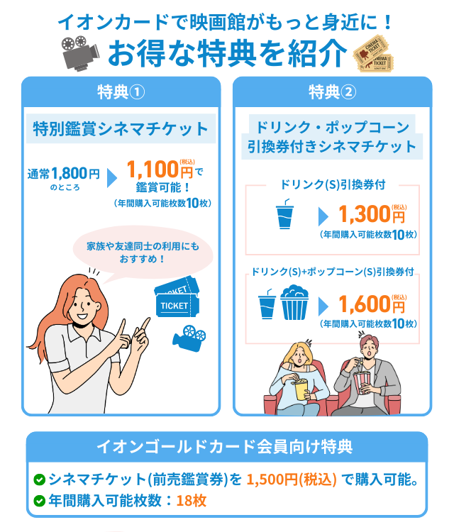 イオンカードのうち、イオングループの映画館「イオンシネマ」での映画鑑賞がお得に観れる特典つきカードが存在する。