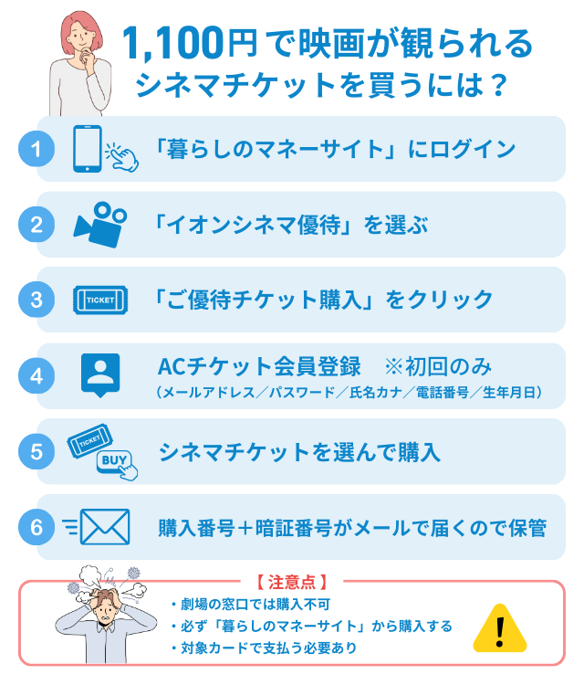 イオンカード特別鑑賞シネマチケットは、イオンカード会員専用サイト「暮らしのマネーサイト」上から購入可能だ。