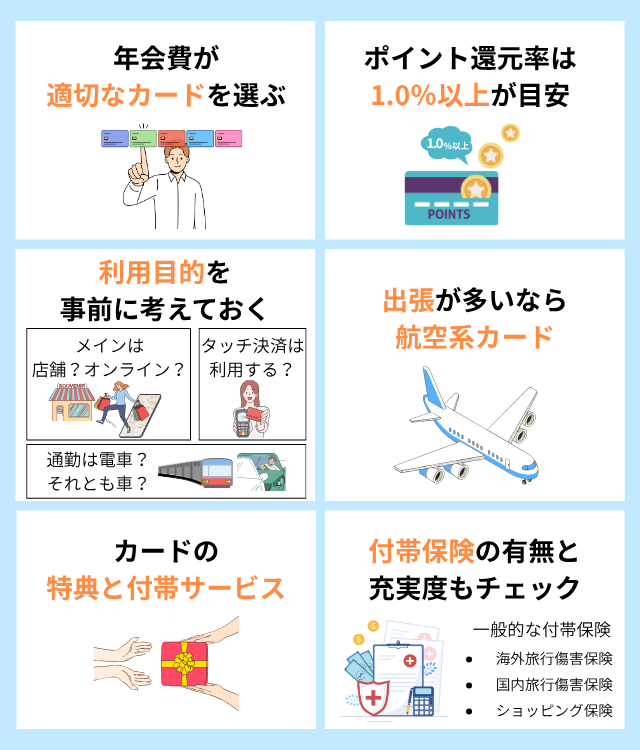 - 旅行傷害保険などの付帯保険もしっかりチェックしよう