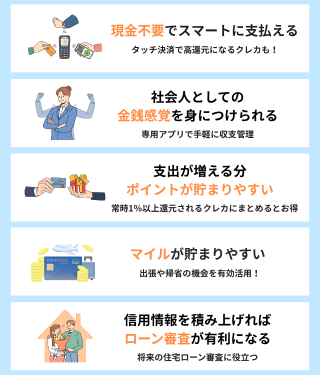 社会人になってすぐにクレヒス(信用情報)を積み上げれば、住宅ローンなどを将来的に組む際に審査を有利に進められるだろう。