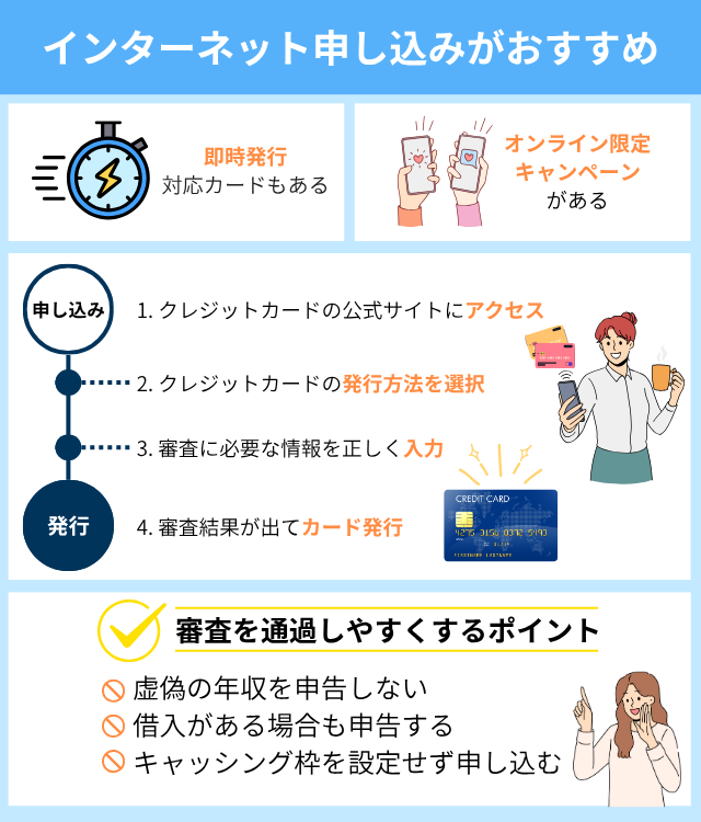 新社会人のクレジットカード作りに、インターネット申し込みをおすすめする理由は以下のとおりだ。