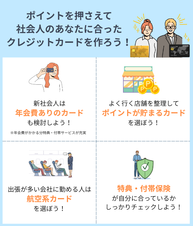 学生時代とは異なり社会人は審査に通過しやすいため、クレジットカードの選択肢が大きく広がる。
