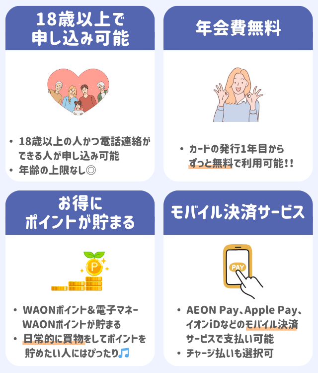 イオンカードを申し込み可能な人は、18歳以上の人かつ電話連絡ができる人だ。