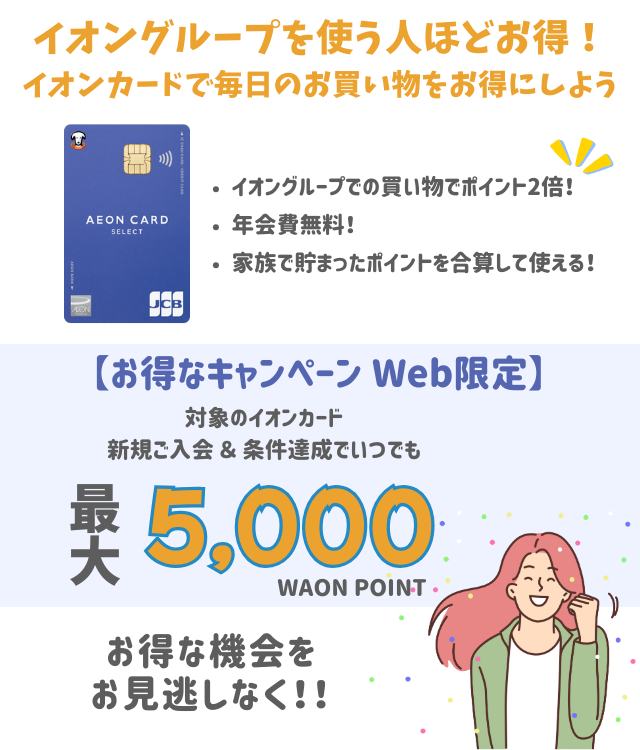 さらに、イオンカードでは最大5,000ポイントがもらえる新規入会キャンペーンを開催している。