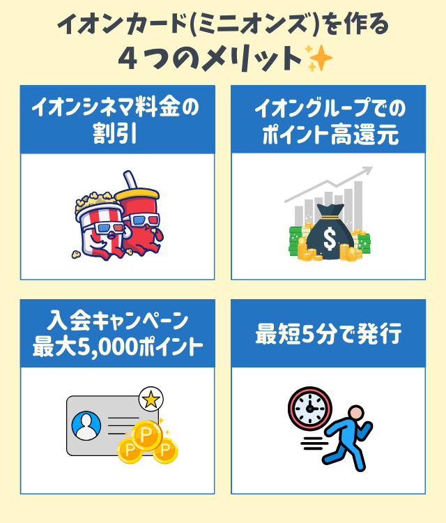 これからイオンカードを作ろうと検討している人にとって、ミニオンズデザインのイオンカードを作ることは、どのようなメリットがあるのか考えていこう。