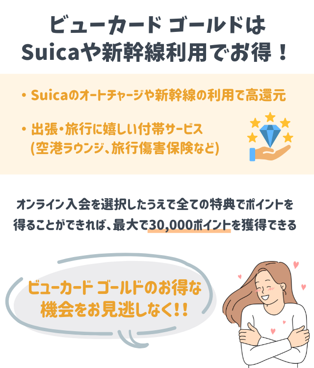 ぜひこの機会にビューカード ゴールドに申し込んで、お得にカード利用を始めてほしい。
