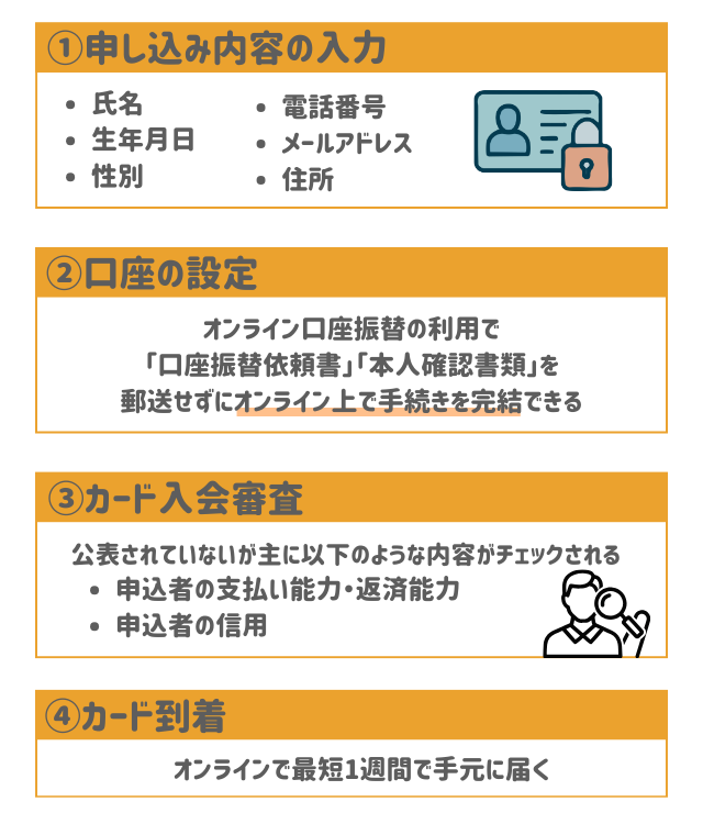 ただし、審査の状況やゴールデンウィーク、年末年始の連休などにより、カードが手元に届くまでに時間がかかる場合もある。