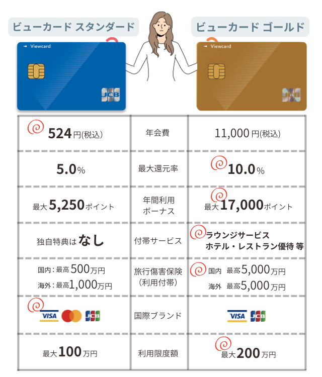 - ビューカードスタンダードとビューカードゴールドの違いが知りたい