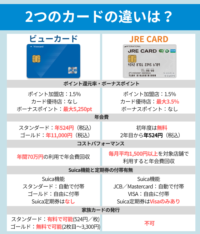 なお、本記事で比較するビューカードはスタンダードとゴールドである。